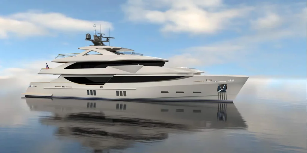 Offers full superyacht functionality with reduced build time, lower crew requirements, and more efficient operating costs.