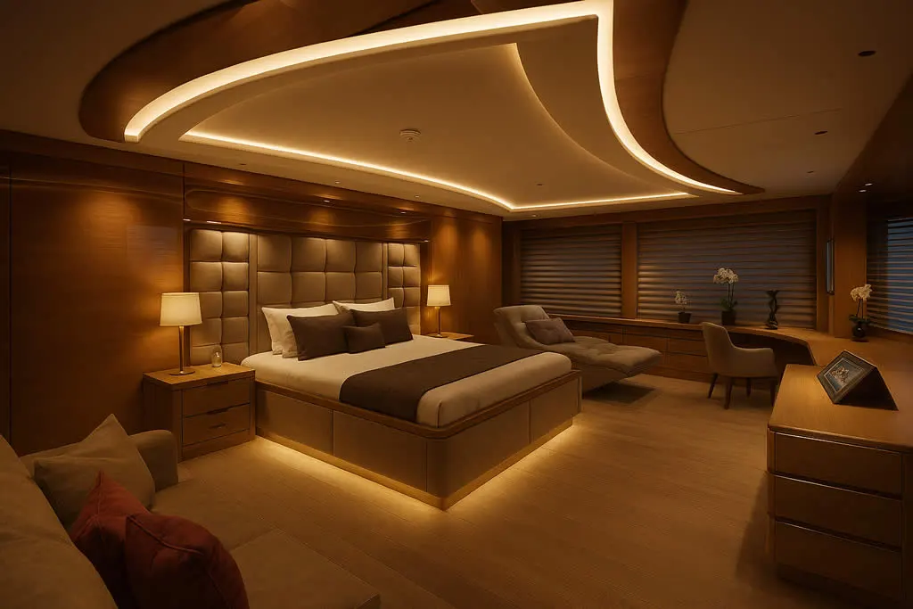 Integrated touch-panel control systems manage lighting, power, climate, and critical vessel operations with precision and ease.