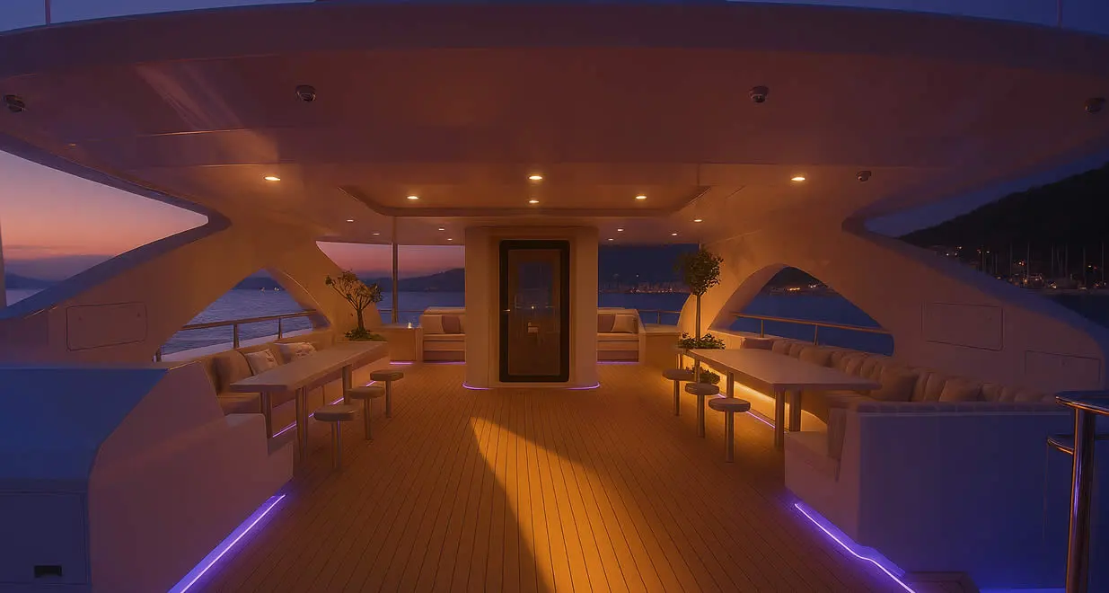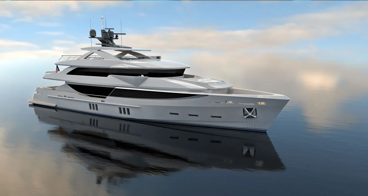 Offers full superyacht functionality with reduced build time, lower crew requirements, and more efficient operating costs.