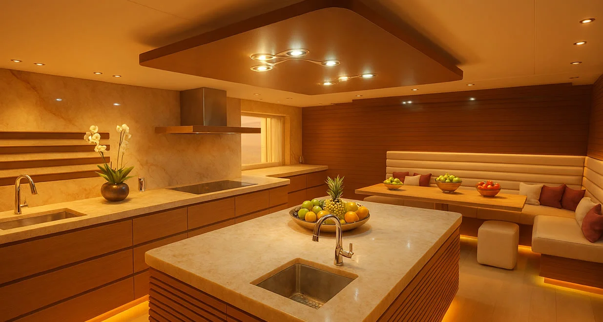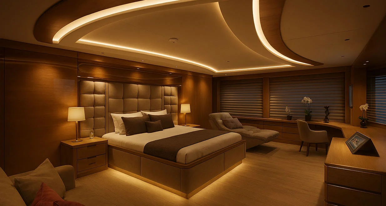 Integrated touch-panel control systems manage lighting, power, climate, and critical vessel operations with precision and ease.